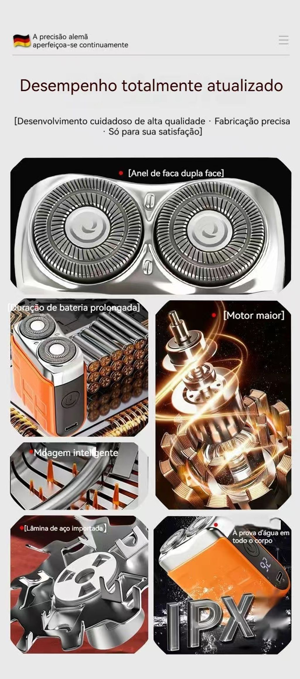 ✅ Rede de Lâmina Suspensa:Barbea suave e completa, adapta-se à pele para não irritar, com limpeza dobrada (remove pelos bem!).