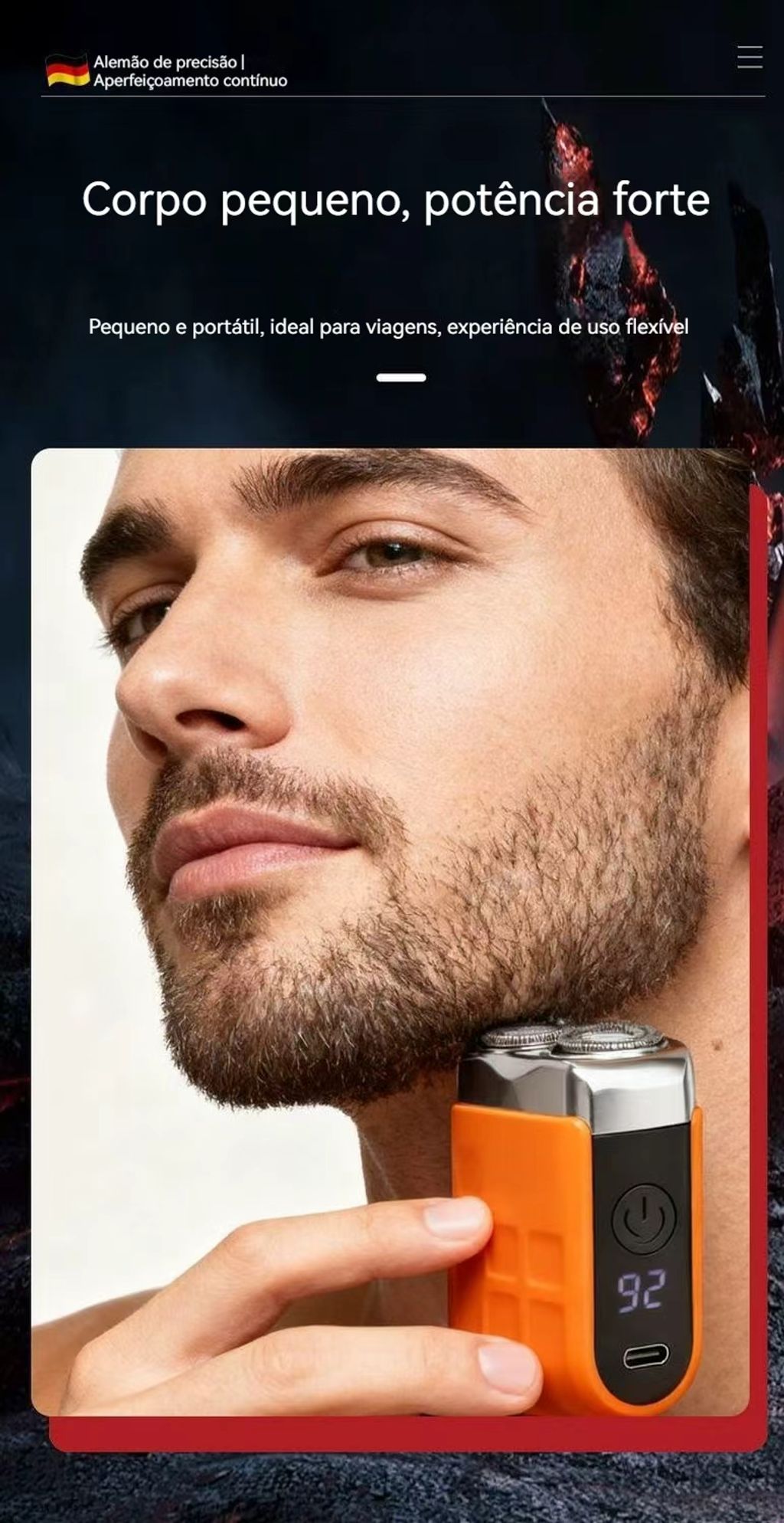 ✅ Inteligente com Indicador:Mostra o nível de carregamento, para não correr risco de acabar a bateria no meio da barba.
