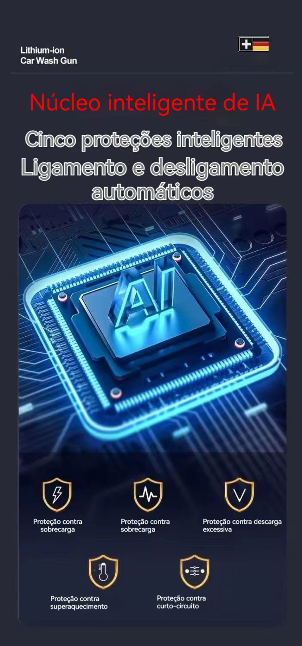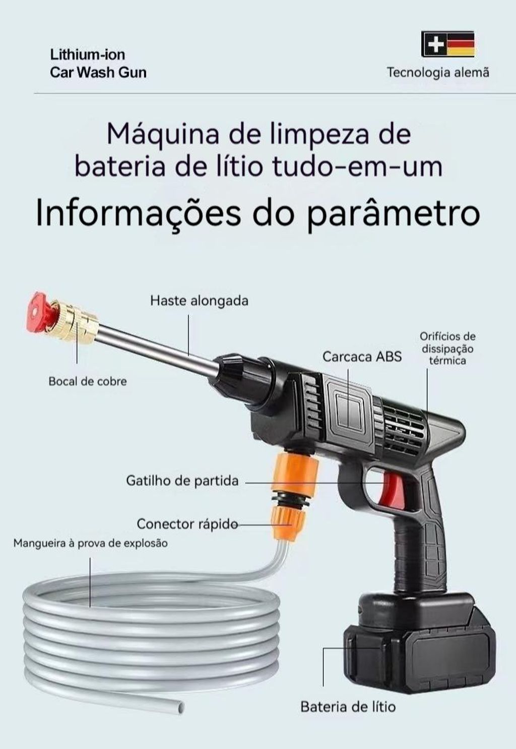 Lavador de carros sem fio a alta pressão importado da Alemanha, portátil para uso doméstico, pistola de água potente com bateria de lítio recarregável para lavar carros