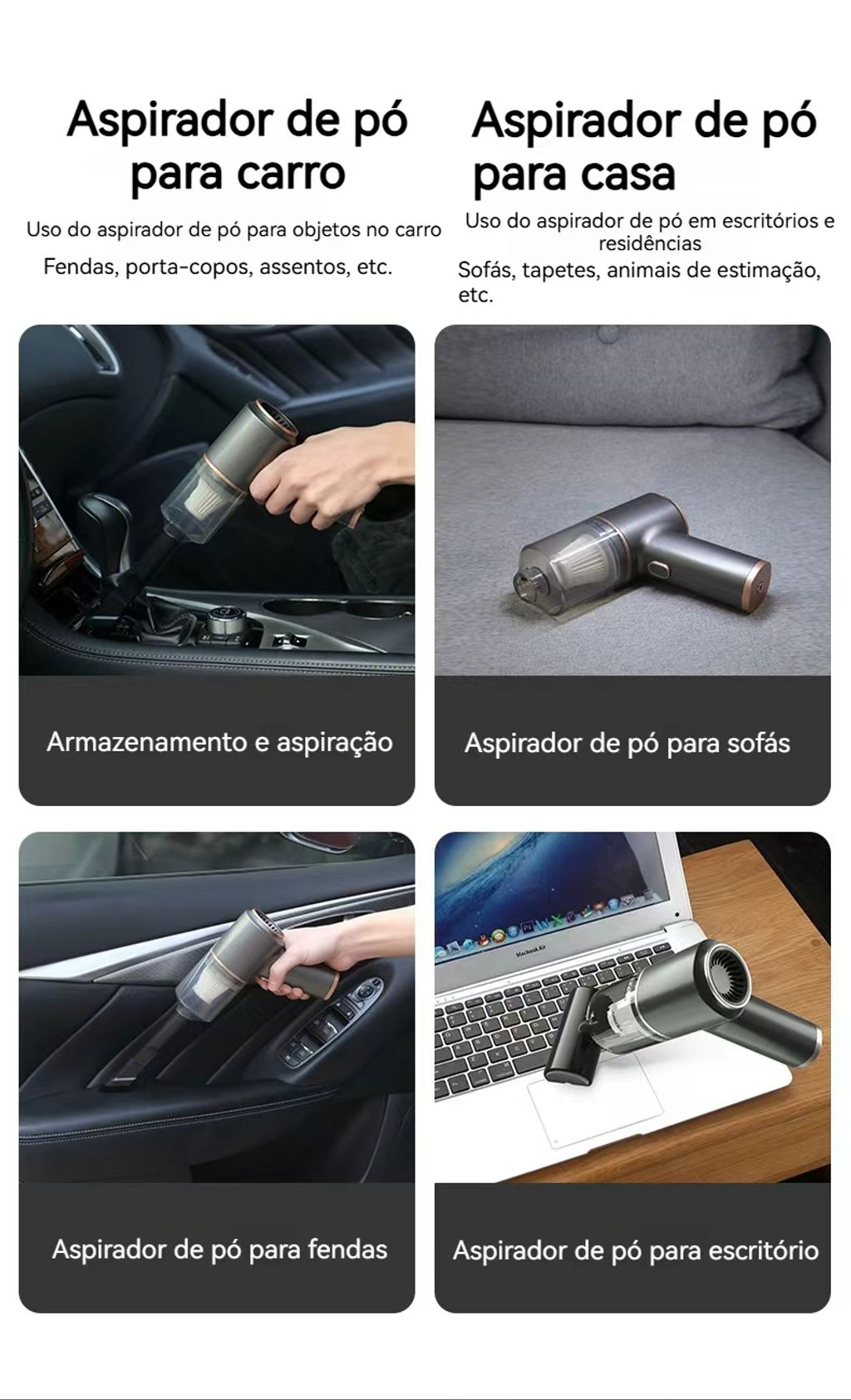✅ Potência 9000Pa:Sucção forte para limpar pó, pedaços de comida e sujeira em carros, tapetes, sofás e cantos estreitos